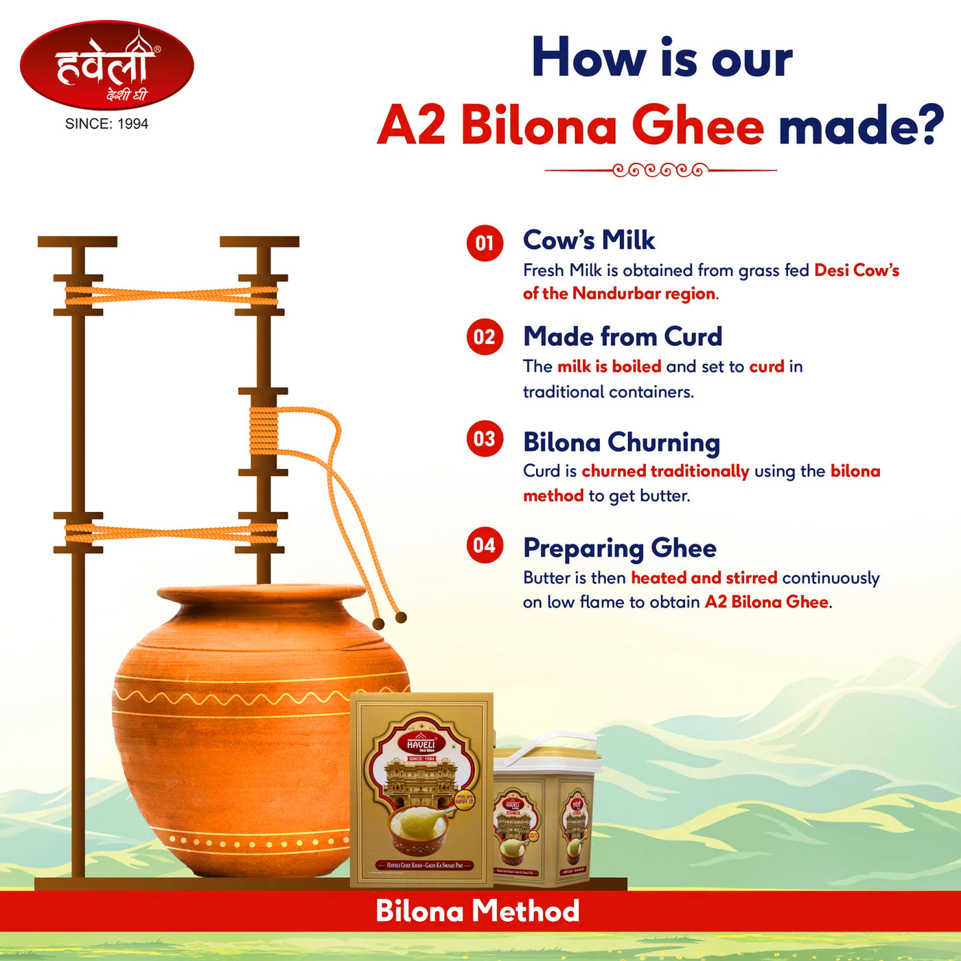 Our ghee is made using the traditional bilona (curd-churning) method. It is 100% natural, preservative-free, and GMO-free, ensuring authentic taste and superior nutrition.